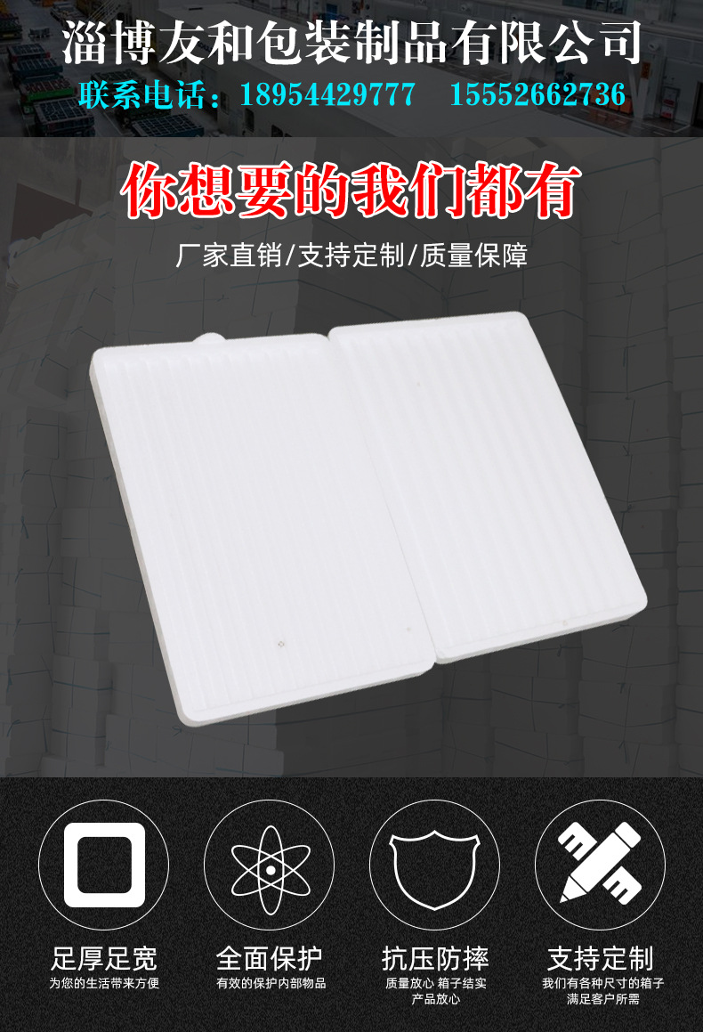 介紹參數(shù)圖冊 ????淄博友和包裝制品有限公司是專業(yè)的山東泡沫包裝箱加工廠家,本廠主要產(chǎn)品有:泡沫包裝箱,泡沫保鮮箱,水果蔬菜泡沫包裝箱,水果蔬菜泡沫保鮮箱,瓷磚泡沫包裝箱等,產(chǎn)品暢銷全國,深受用戶好評。泡沫包裝定做可以聯(lián)系我們網(wǎng)站 http://m.bjswzx.cn/ 上電話,我們會第一時間跟您聯(lián)系。 上一篇棉花糖機(jī)防壓泡沫包裝盒 下一篇普通電瓶包裝泡沫箱