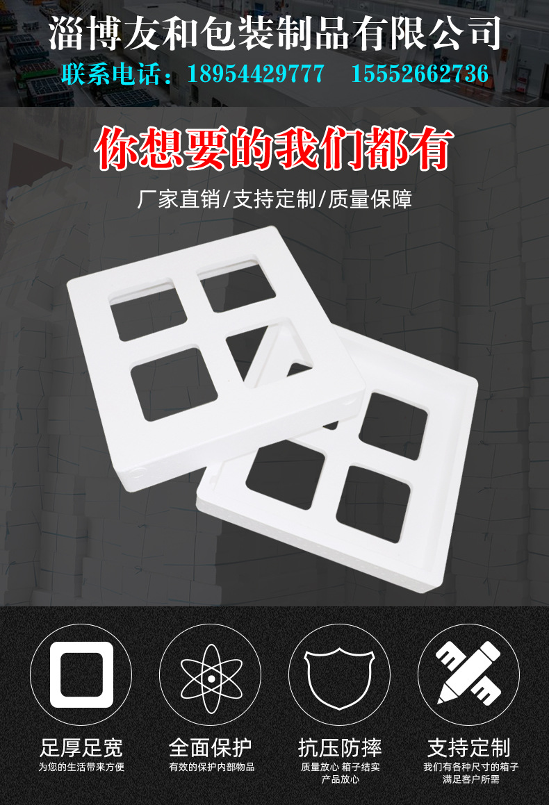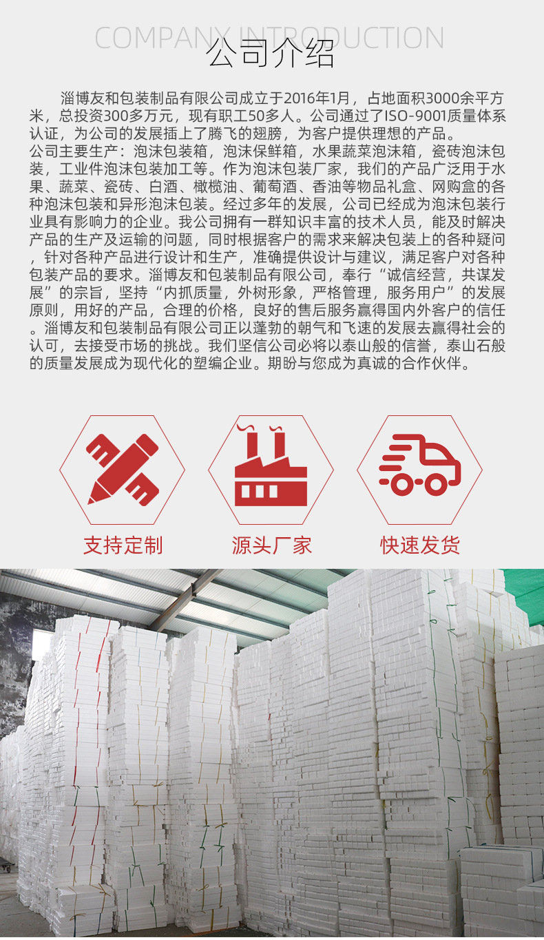 介紹參數圖冊 ????淄博友和包裝制品有限公司是專業的山東泡沫包裝箱加工廠家,本廠主要產品有:泡沫包裝箱,泡沫保鮮箱,水果蔬菜泡沫包裝箱,水果蔬菜泡沫保鮮箱,瓷磚泡沫包裝箱等,產品暢銷全國,深受用戶好評。泡沫包裝定做可以聯系我們網站 http://m.bjswzx.cn/ 上電話,我們會第一時間跟您聯系。 上一篇節能LED燈具包裝箱 下一篇電磁包裝泡沫箱