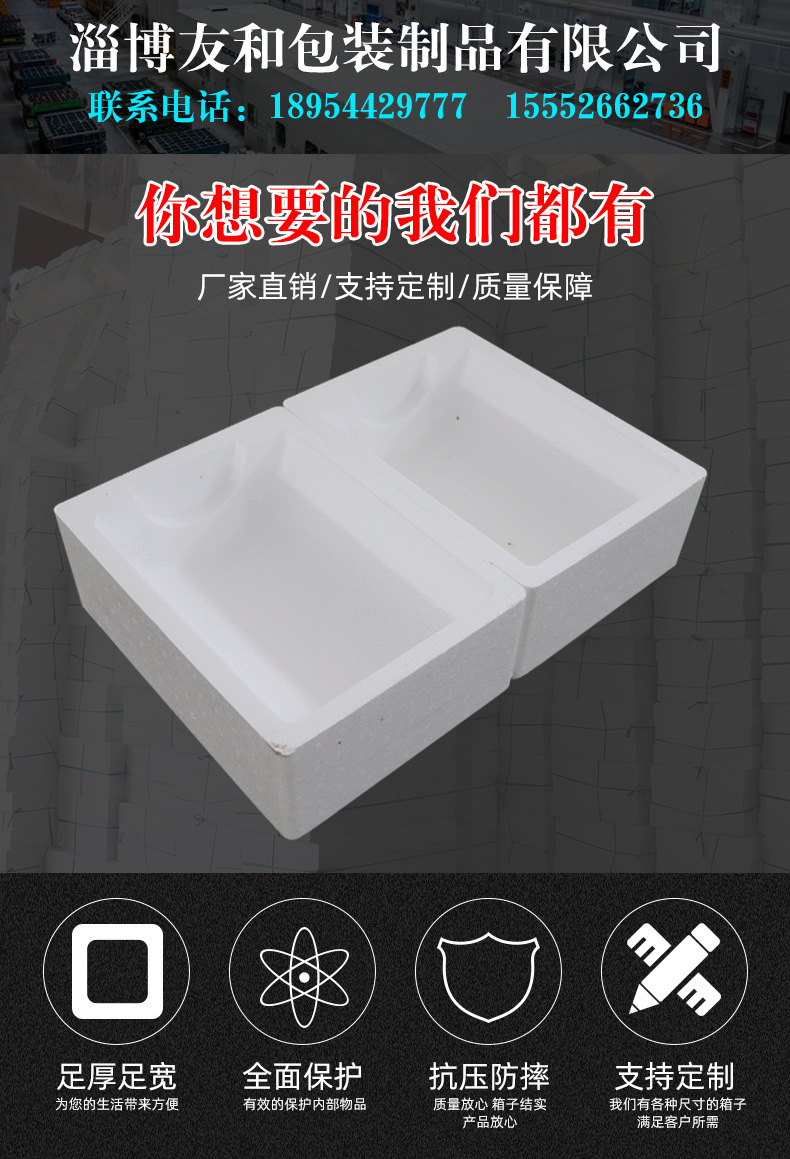 ????淄博友和包裝制品有限公司是專業的山東泡沫包裝箱加工廠家,本廠主要產品有:泡沫包裝箱,泡沫保鮮箱,水果蔬菜泡沫包裝箱,水果蔬菜泡沫保鮮箱,瓷磚泡沫包裝箱等,產品暢銷全國,深受用戶好評。泡沫包裝定做可以聯系我們網站 http://m.bjswzx.cn/ 上電話,我們會第一時間跟您聯系。